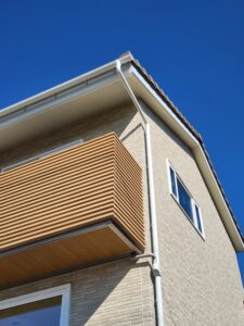 | 深い軒は、夏の日差しを遮り、冷房負荷を少なくします。一方、太陽高度の低い冬には、日差しを室内に取り込み、暖房負荷を少なくします。また、雨による外壁の汚れはもちろん、紫外線による塗装の劣化を防ぐことで、長持ちする「住み継がれる家」を実現します。 |